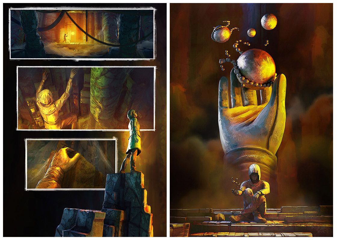 Etimadera: Monuments of the Past is a standalone project within Maciej Drabik's Etimadera universe. The narrative follows the mysterious Yesseri Gatta, a man on a pilgrimage seeking monuments of the past. Join Yesseri as he explores forgotten worlds and manipulates the matter around him.