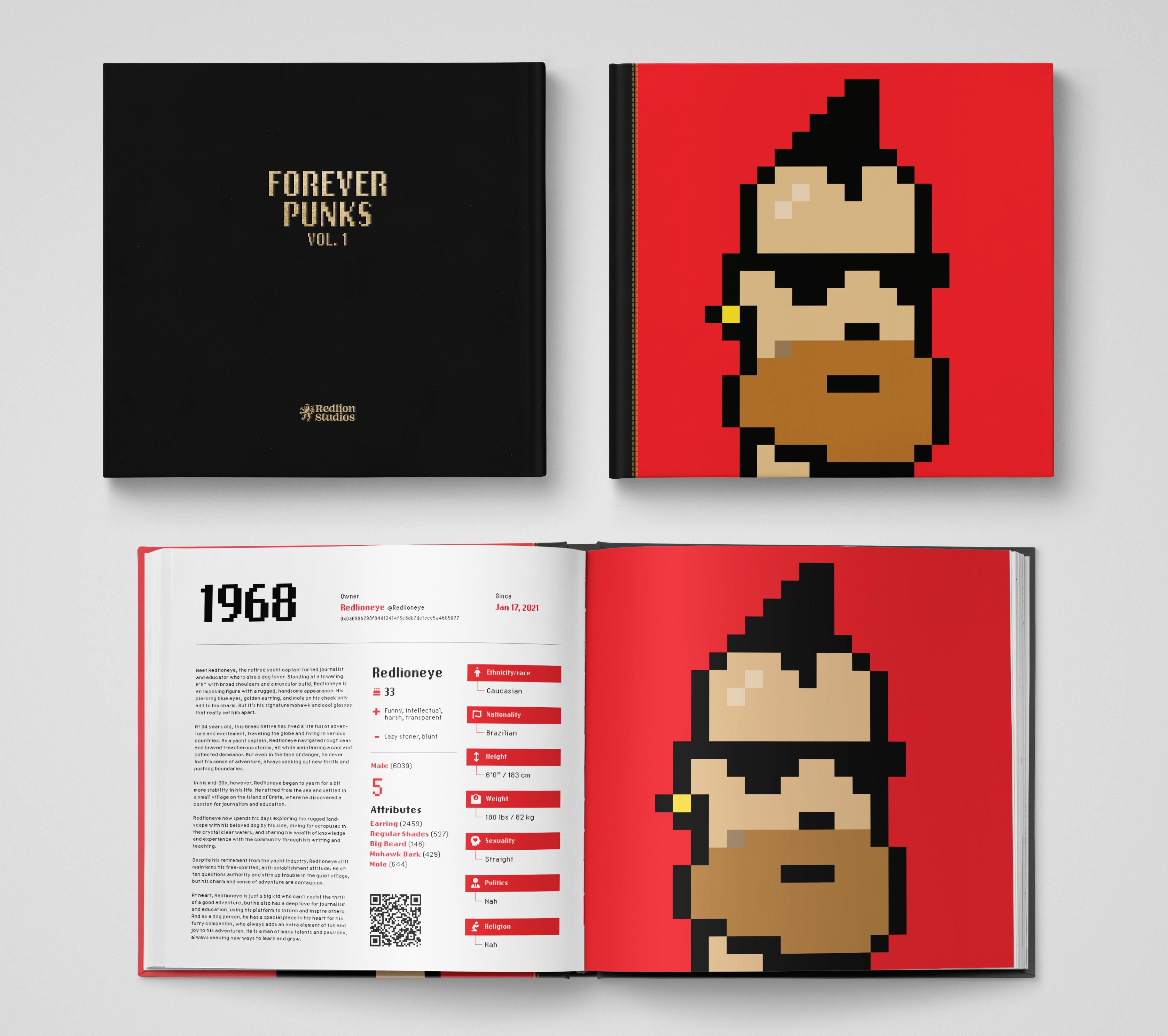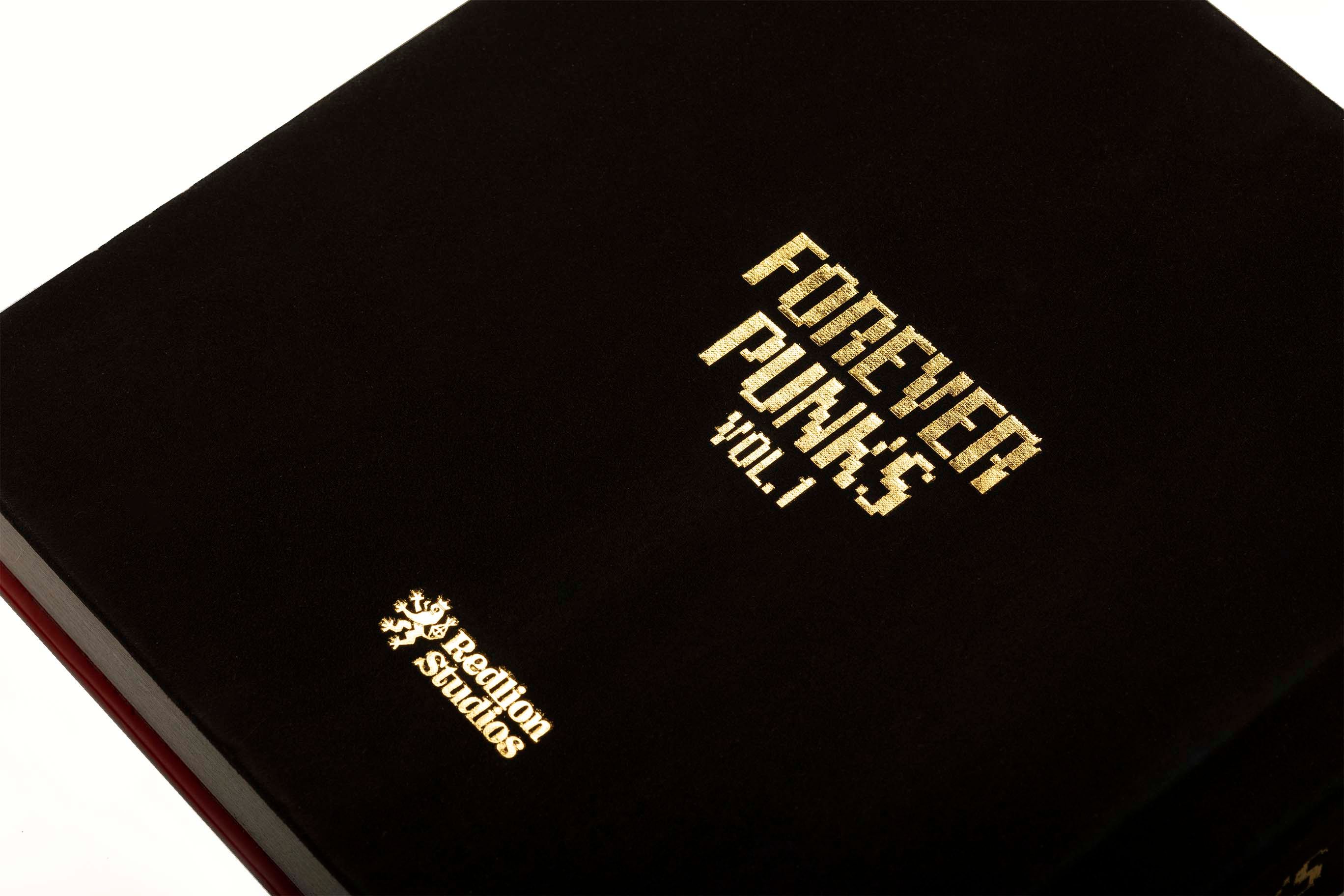 Redlion Studios is proud to offer a bespoke, museum-quality hardcover book. Buyers get their punk and chosen background color on the cover.